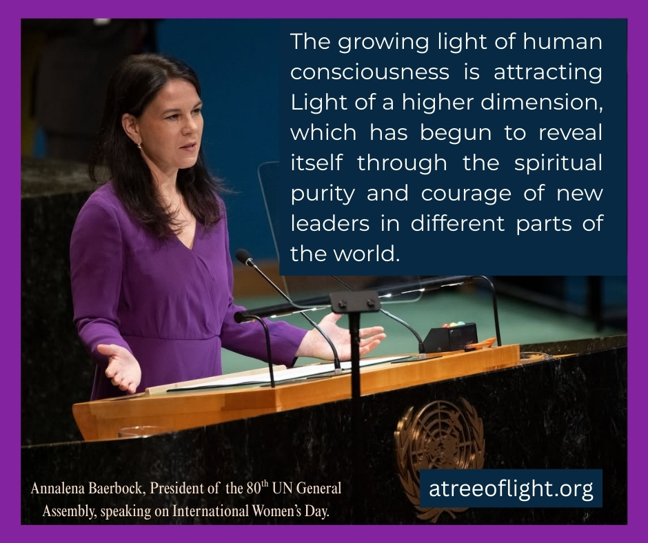The growing light of human consciousness is attracting Light of a higher dimension, which has begun to reveal itself through the spiritual purity and courage of new leaders in different parts of the world. 453-F